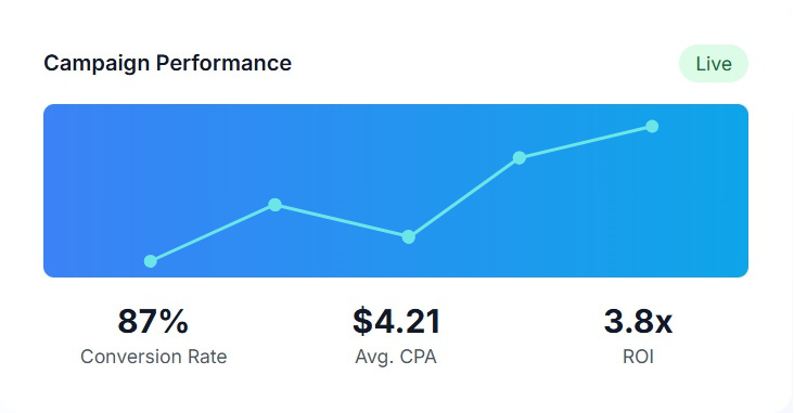 Say goodbye to blind spending. Our real-time dashboard offers complete visibility into your campaign's performance